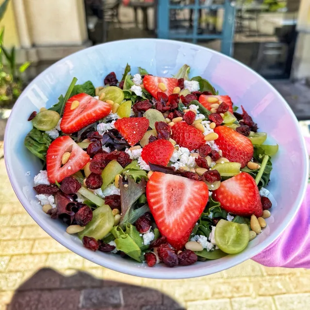Spring mix, grapes, strawberries, pine nuts, dried cranberries, feta cheese, lemon honey dressing